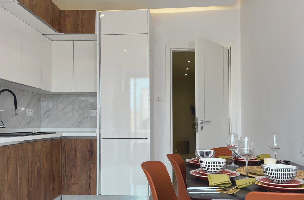 Une cuisine conçue pour la vie moderne, où la fonctionnalité rencontre l’esthétique. Chaque détail a été soigneusement pensé pour maximiser l’efficacité et le confort. Des surfaces de travail en quartz résistantes aux éclaboussures aux armoires spacieuses à fermeture en douceur, chaque élément témoigne de la qualité et de la praticité.