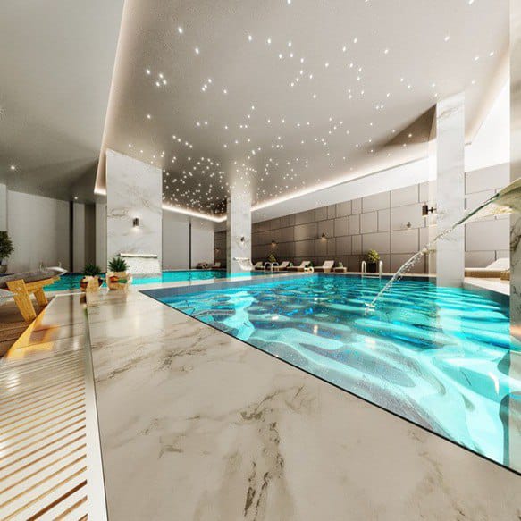 Le design de notre piscine intérieure est une fusion d’élégance contemporaine et de sérénité.